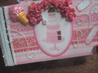 This mini was made for my daughter for her birthday. It was lots of fun making and adding all the embellishments to it. She drew a couple of pictures in it and added it to one of the pages. This was made with DCWV Sweet Stack paper. It is really cute with all the glittery pages in it. I added a chunky chain on the spine. Take a look at the video for more information about this adorable mini.